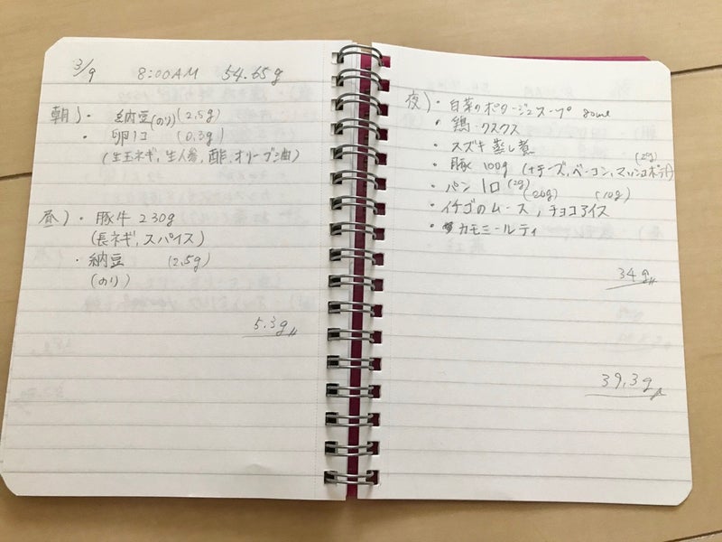 わざわざ書かなくても1日食べたものくらい覚えているわと思っていましたが、私の場合は記録してみると意外と間食が多く食事量も多くなっていました。また、体重も記録することで前日に何を食べたか見直して増えた原因を確認できました。